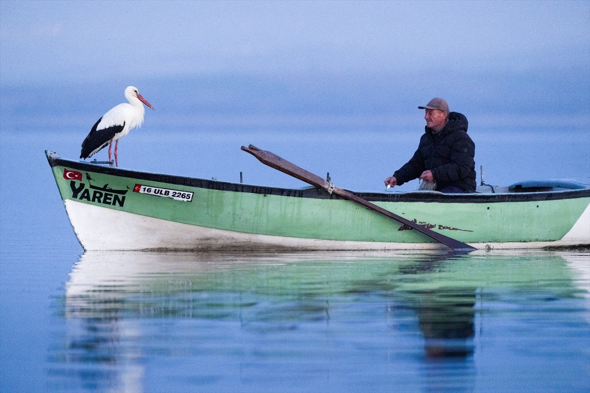 Adem Yılmaz, Uluabat Gölü’nde kayığıyla balık tutarken bir leylek teknesine kondu. Adem Amca, bu leyleğin aç olduğunu düşünerek ona tuttuğu balıklardan verdi.