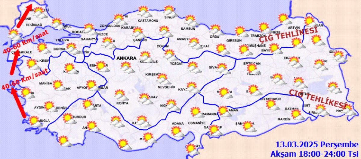 Parçalı ve az bulutlu geçeceği tahmin ediliyor. Sabah ve gece saatlerinde bölgenin doğusunda buzlanma ve don olayı ile birlikte pus, yer yer sis bekleniyor. Bölgenin yüksek ve eğimli yamaçlarında çığ tehlikesi bulunmaktadır.