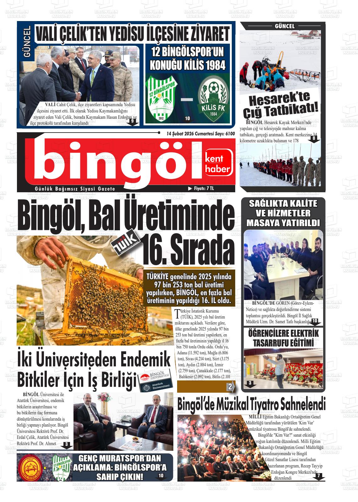 Bİngöl Yerel Gazeteleri 14 Şubat 2026, Cumartesi Günü Manşeti