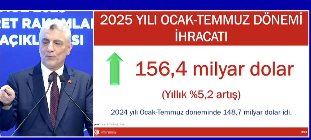 Ticaret Bakanı Ömer Bolat, 2025 yılı Temmuz ayı ihracat sayılarını Samsun’da düzenlenen bir toplantı ile duyurdu.