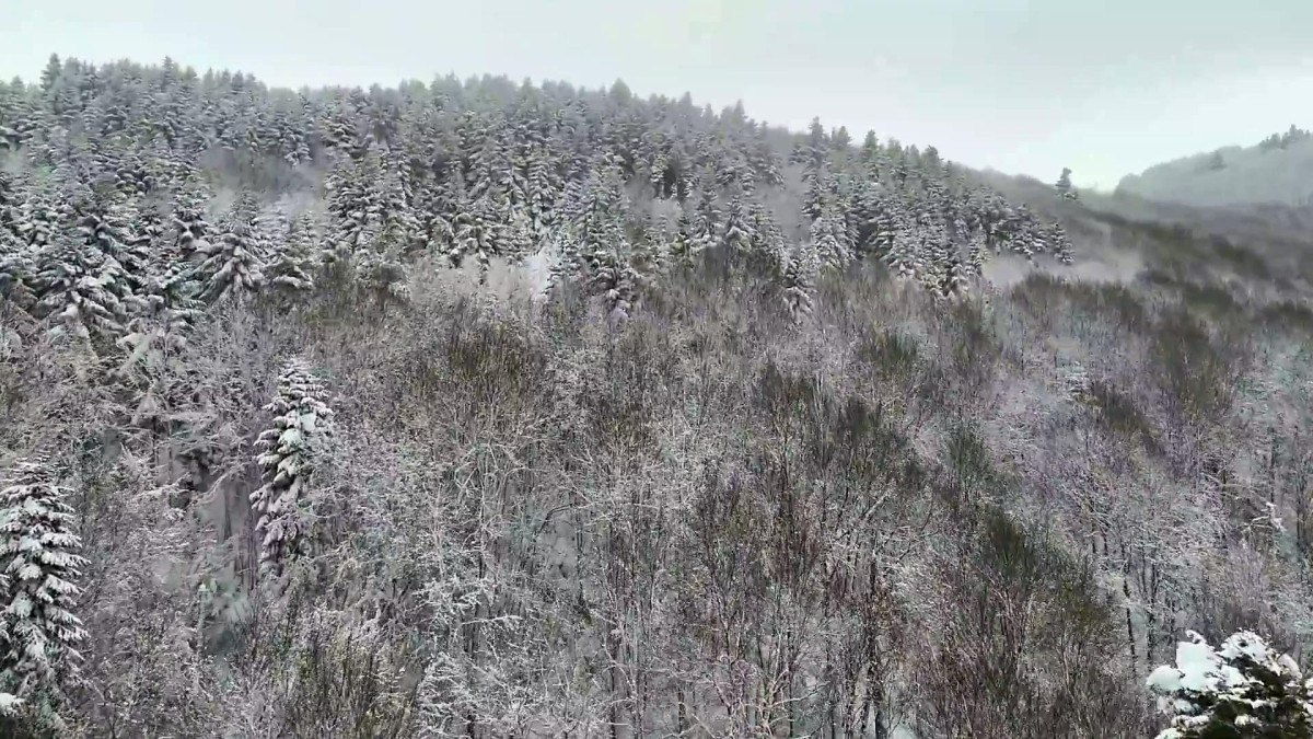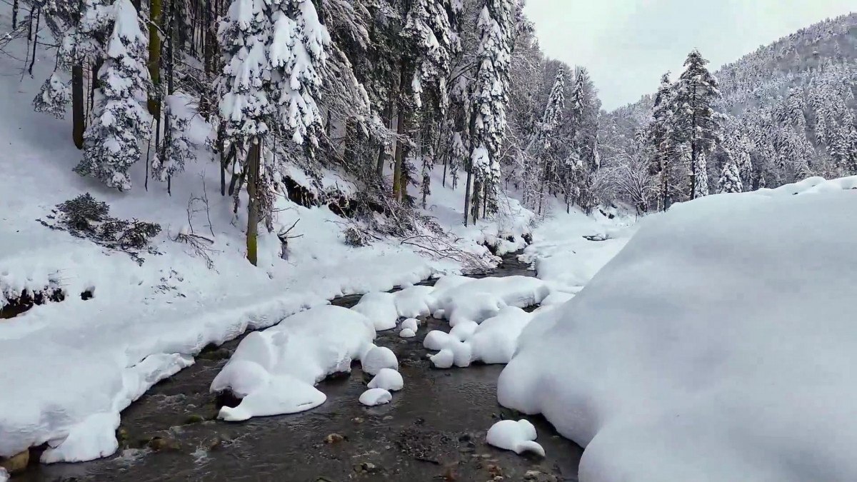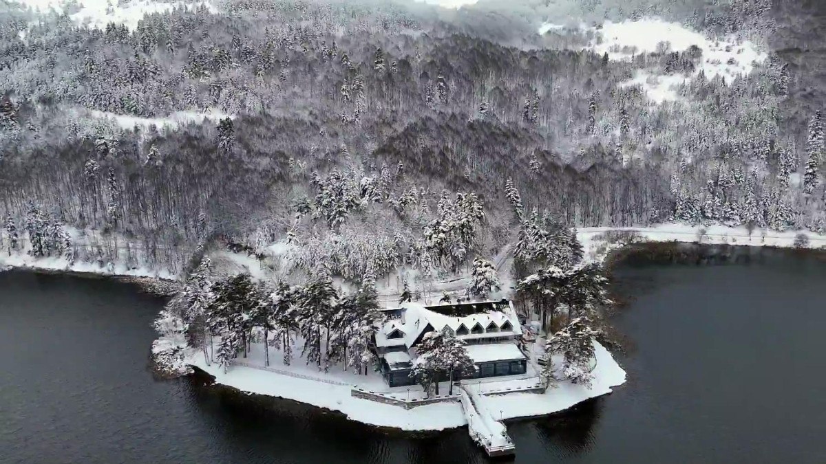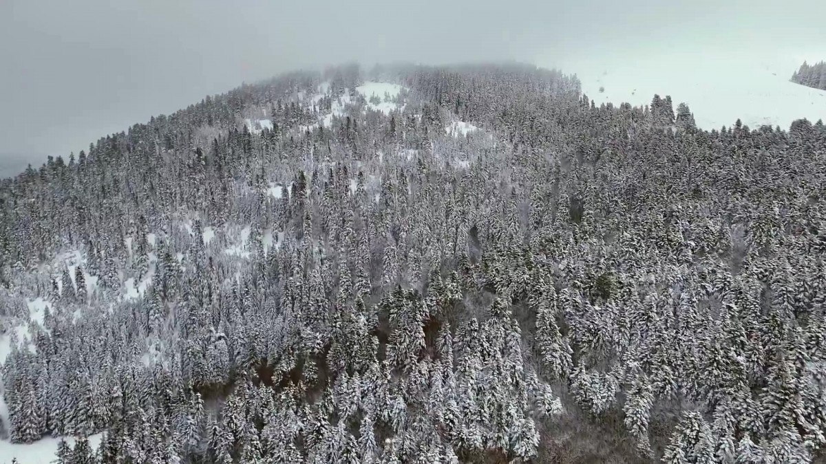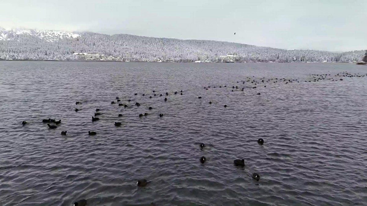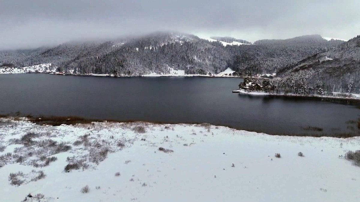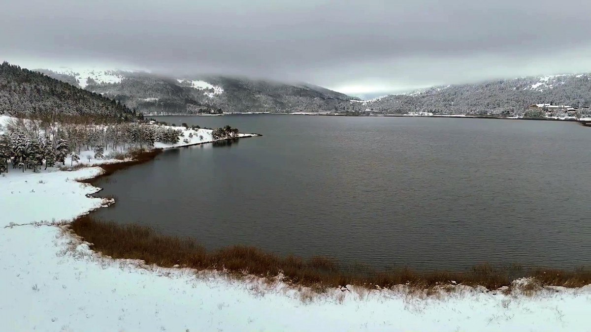 Milli parkta kar kalınlığı yarım metreye ulaştı. Göl ve karla kaplanan ormanlar, havadan dron ile görüntülendi.