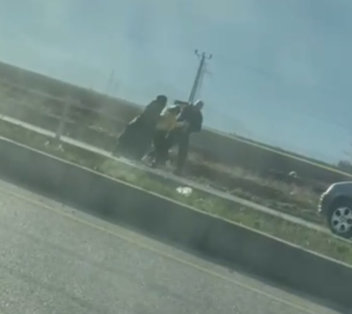 Bu sırada araçtaki kız çocuğu da inerek, çifte engel olmaya çalıştı. Adam, çocuğa tokat attı. Genç kadını araca bindiren çift daha sonra yolculuğa devam etti.