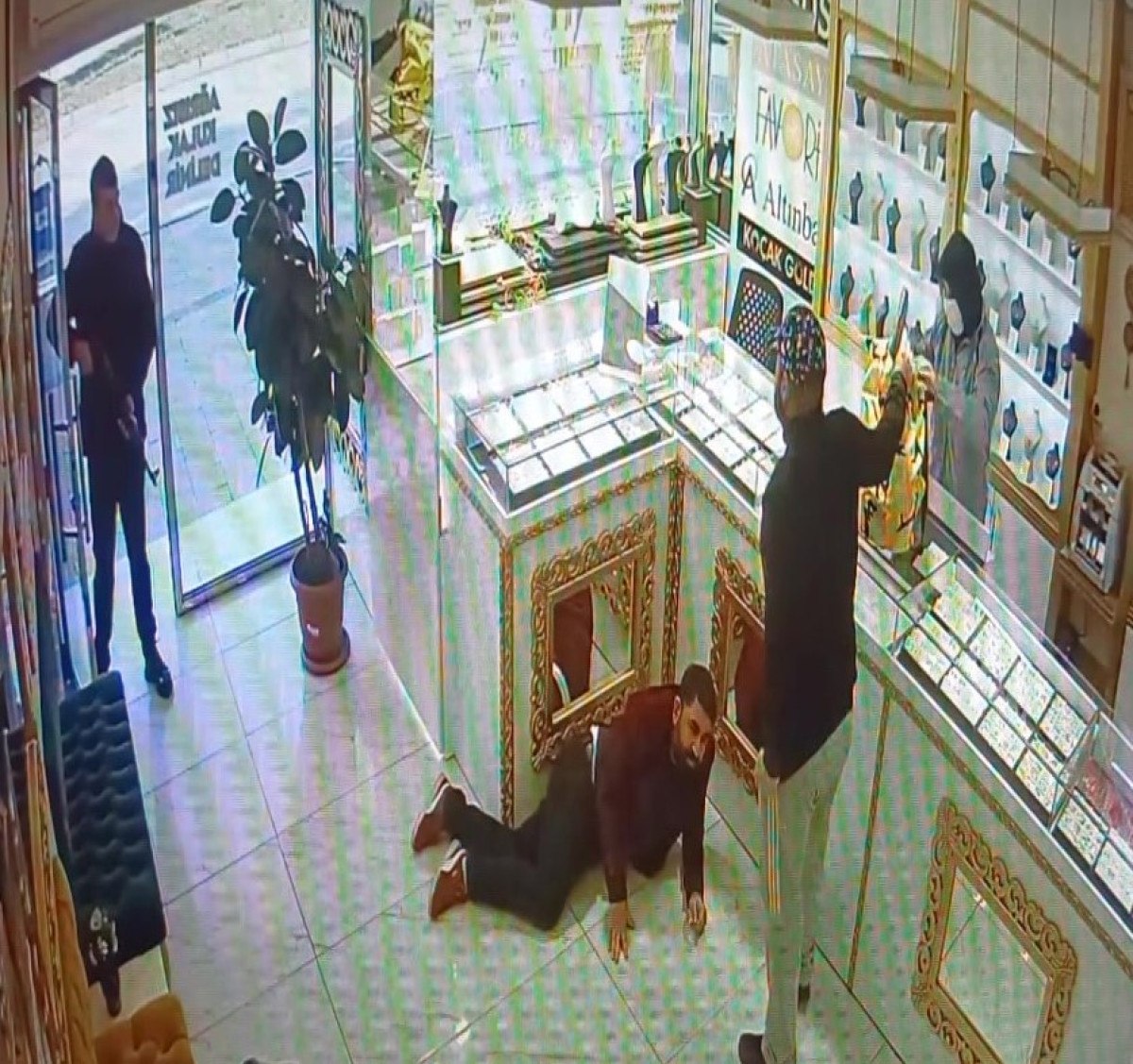 Elinde Kalaşnikofla içeri giren İbrahim G. (20), iş yeri sahibi H.Ç.’ye silahı doğrultup “Kıpırdamayın, altınları alıp gideceğiz” dedi.
