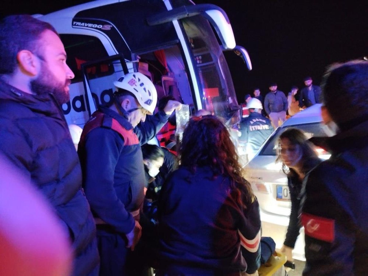 Adana’nın Kozan ilçesi Kadirli yolunda yolcu otobüsü ile otomobil çarpıştı.