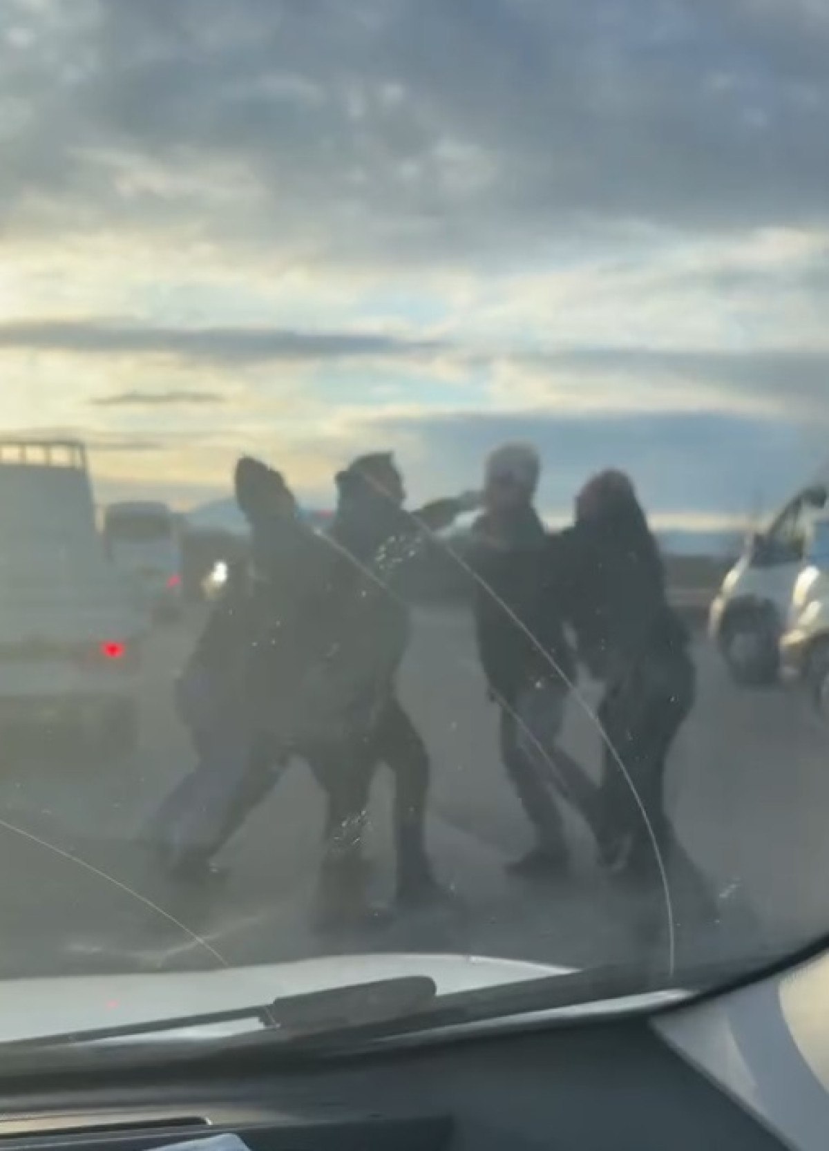Başka sürücüler de kavgaya dahil olunca trafik bir süre durdu.