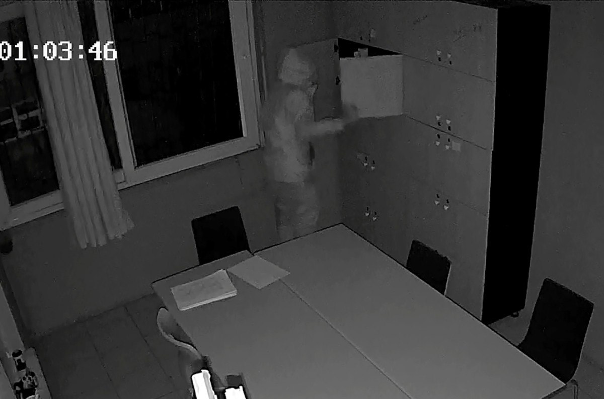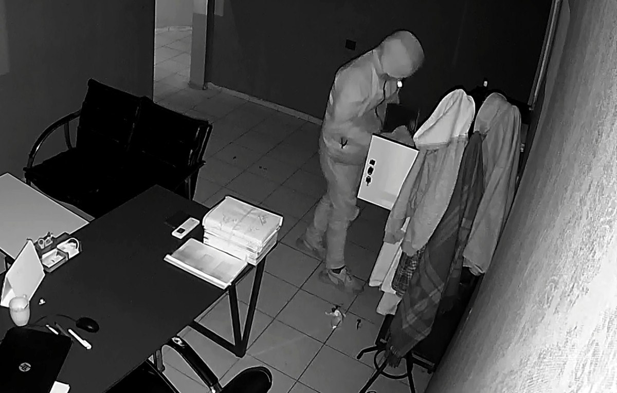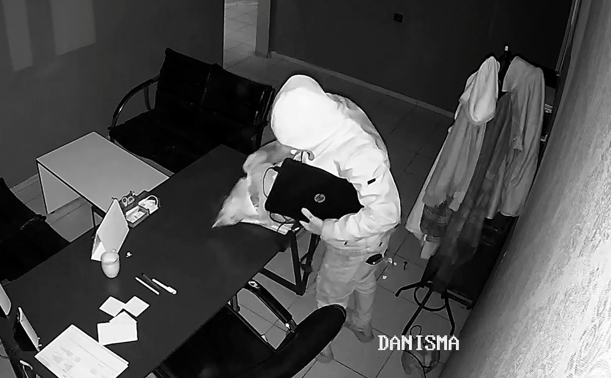 Odalarda dolaşan şüpheli, 2 dizüstü bilgisayar, cep telefonu, 300 lira ile güvenlik kamerasının kayıt cihazını çalıp, sırtında taşıdığı çuvala doldurdu.