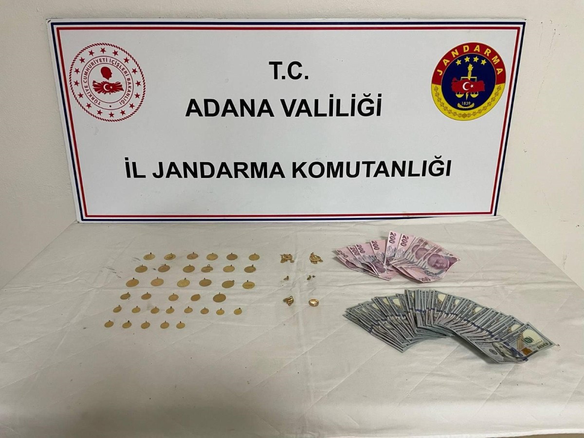 Evde yapılan aramada 20 tam altın, 3 adet yarım altın, 11 çeyrek altın, 2 çift küpe, 2 yüzük, 2 bin 800 TL ile 4 bin 600 ABD doları ele geçirildi.