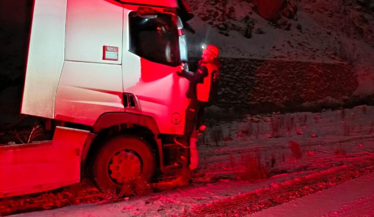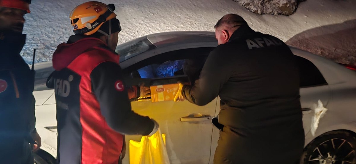 Trafiğe kapanan yolda mahsur kalanlara battaniye ve kumanya dağıtıldı.