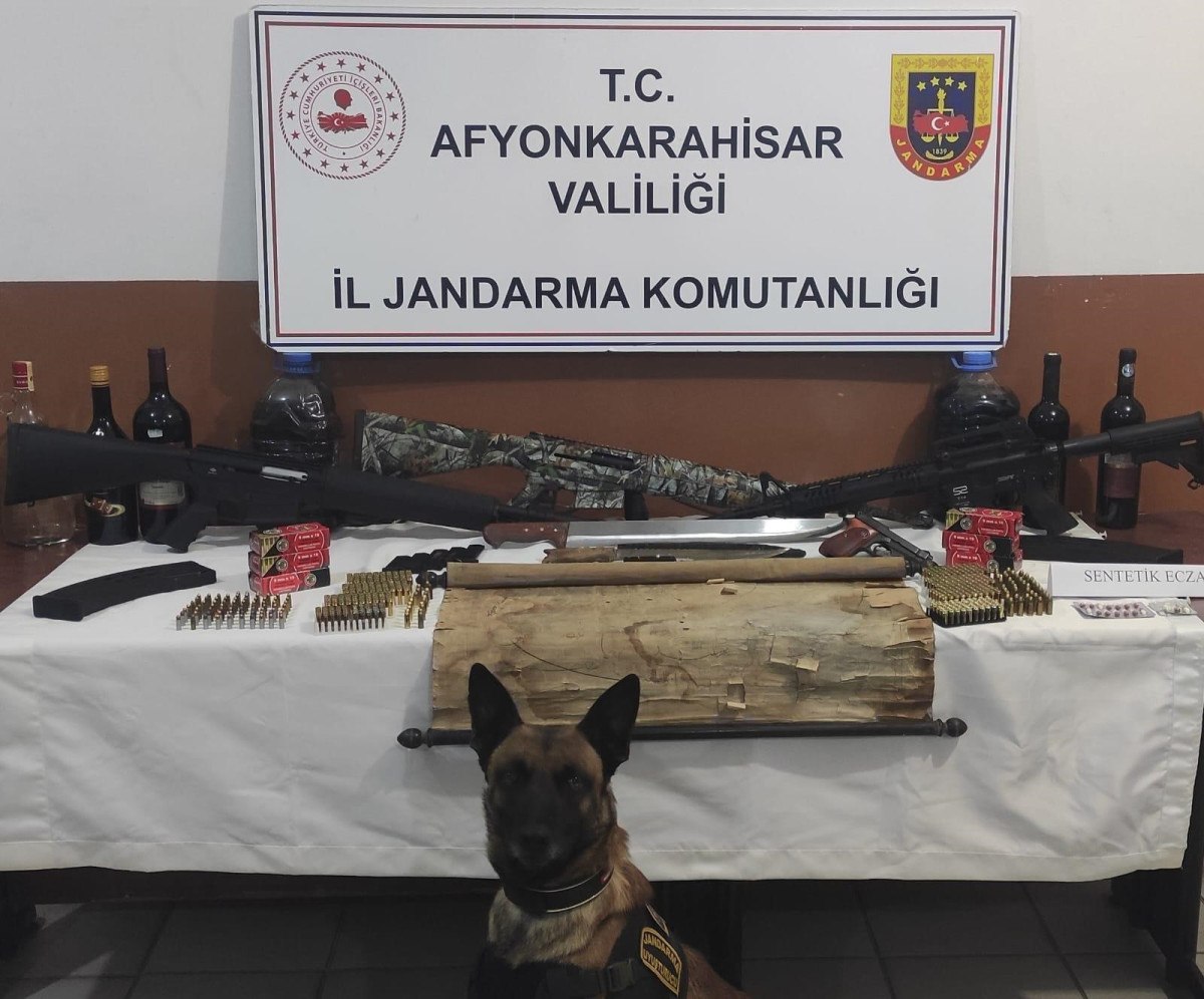 Afyonkarahisar İl Jandarma Komutanlığı ekipleri Sinanpaşa İlçesi Tınaztepe Beldesinde faaliyet gösteren bir işletmede uyuşturucu ve kaçak alkol bulundurdukları yönünde bilgi aldı.