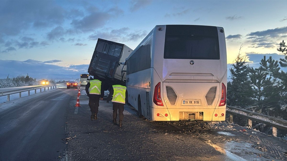 Afyonkarahisar’dan Ankara yönüne doğru seyreden bir yolcu otobüsü şoförü, kar yağışı sonrası kayganlaşan yolda direksiyon hakimiyetini kaybetti.