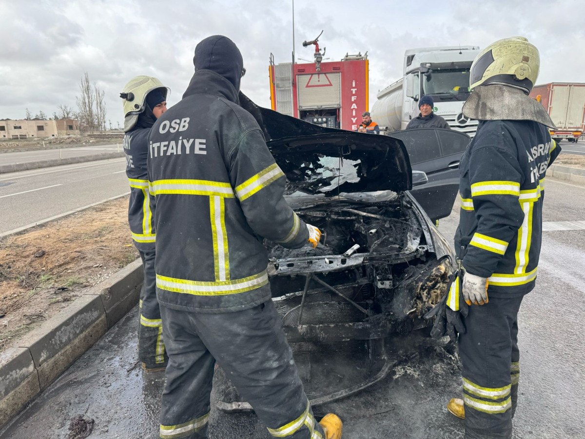 Aksaray – Adana kara yolu Yeni Sanayi Sitesi girişinde seyir halindeki araçta yangın çıktı.