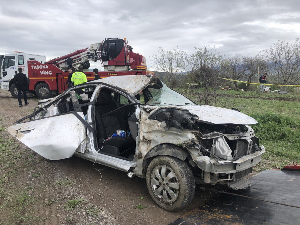 Araç, yoldan çıktıktan sonra yaklaşık 56 metre boyunca takla atarak tarlaya uçtu.