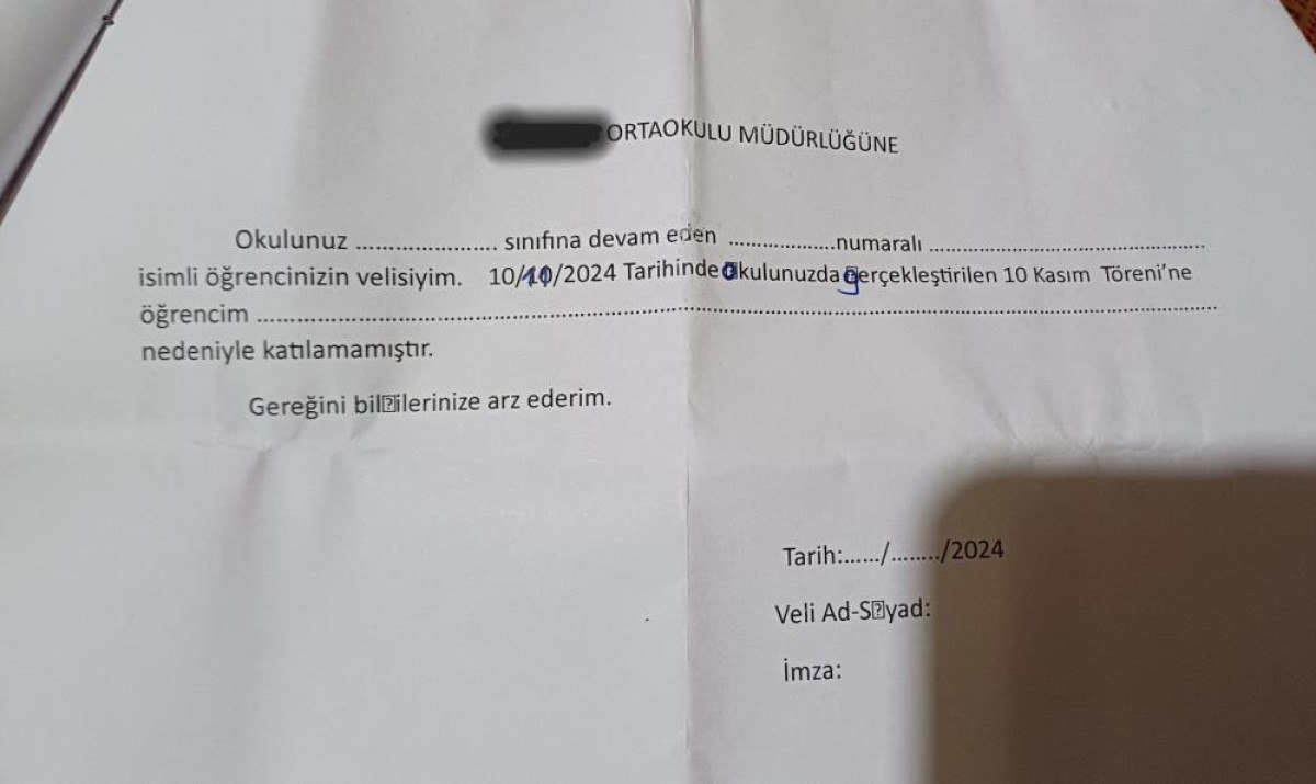 Konuyla ilgili sosyal medya hesabından açıklamada bulunan veli Polat, “Oğulcan’ım grip nedeniyle doktora gitti, 8-9 Kasım tarihleri için rapor verildi. Okul 10 Kasım’da anma töreni yapmış. Dün okul yönetimi oğlumla konuşmuş. Bugün de tarafıma bu evrak gönderildi.” ifadelerine yer verdi.