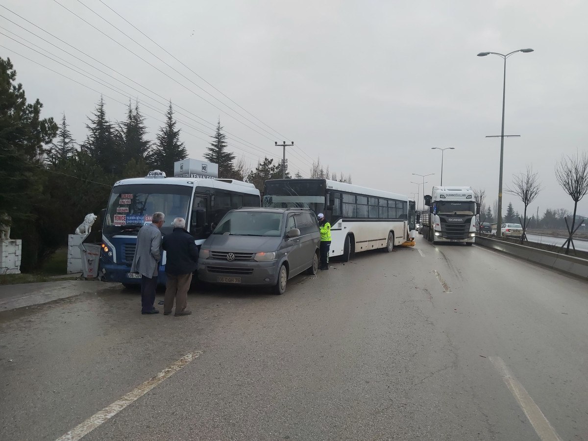 Çubuk-Ankara yolu üzerinde seyreden 2 minibüs ile işçi taşıyan 2 otobüs, henüz bilinmeyen sebeplerle Güldarpı mevkiinde çarpıştı.