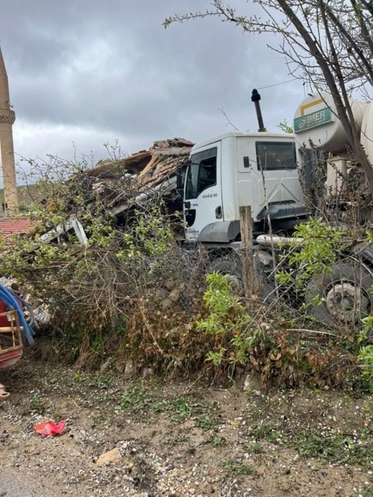 İlerleyen beton mikseri, müstakil bir eve çarparak durabildi.