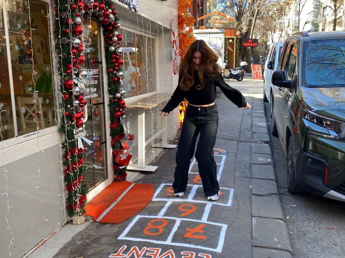 Kaldırımdaki seksek oyunu, geçenlerin dikkatini çekti.