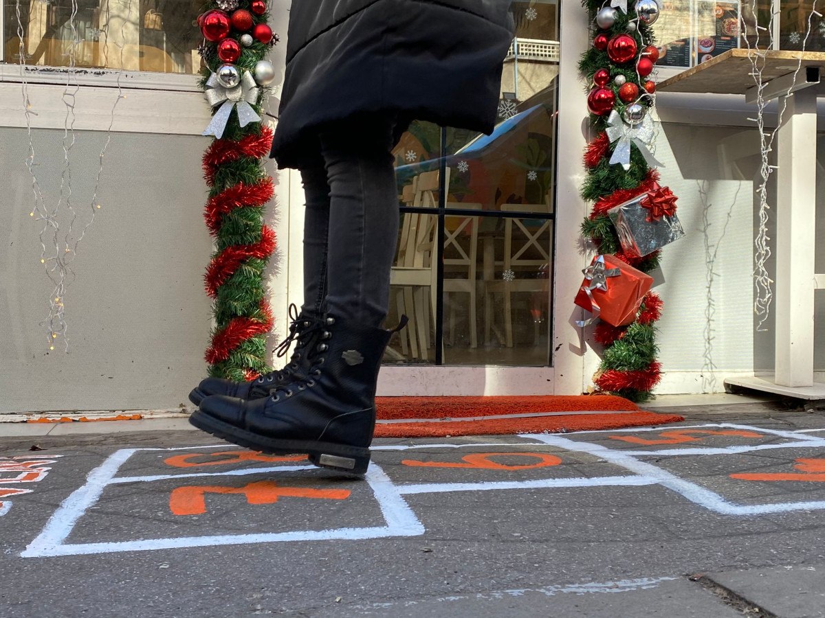 Kaldırımdaki seksek oyunu, geçenlerin dikkatini çekti.