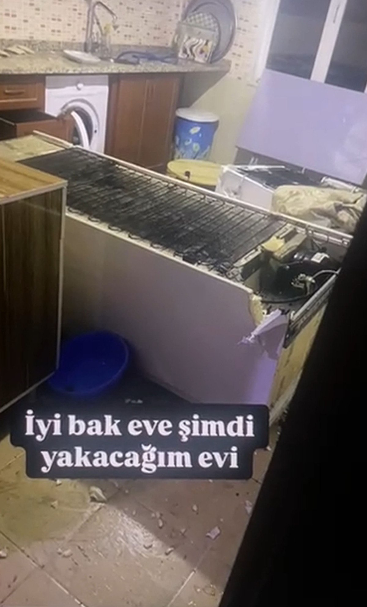 ‘Hadi polis çağır’ ve ‘İyi bak eve şimdi yakacağım’ notlarıyla evi dağıttığı fotoğrafları paylaşan S.Ö.’nün, “Evi yakacağım. Gördün mü evi? Bir tane eşya koymayacağım bu evde” dedikten sonra eşyaları ateşe verdiği, sonra da “Vallahi çatır çatır da yanıyor” dediği duyuldu.