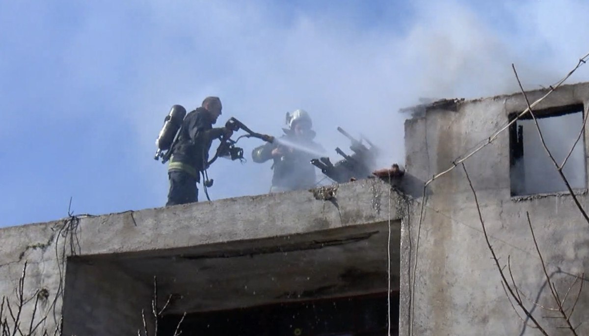Kısa sürede yangın yerine ulaşan itfaiye ekibi, alevlere müdahale ederken içeride birilerinin olduğunun belirtilmesi üzerine yangın merdiveniyle bir kadını çıkardı.