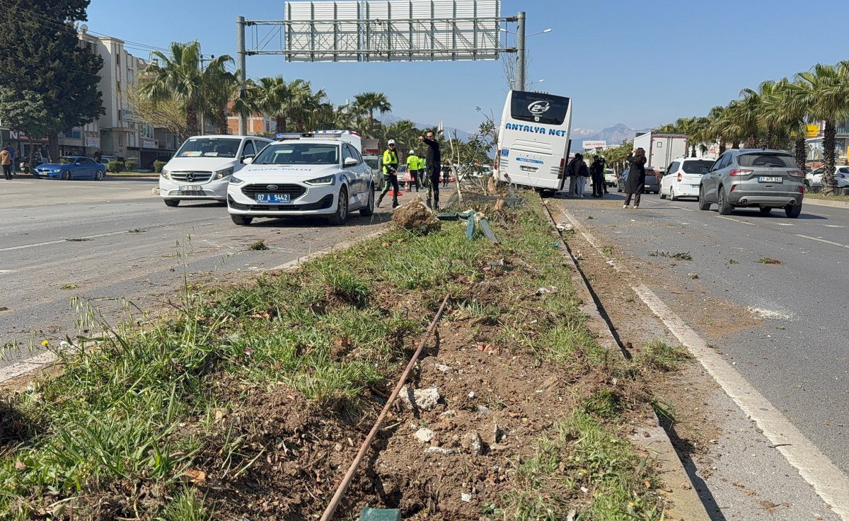 Antalya’da direksiyonu kilitlenen yolcu otobüsü refüje çıktı: 6 yaralı