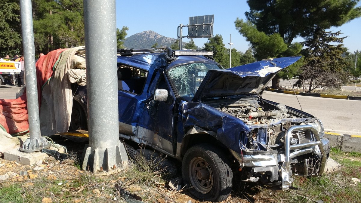 Çarpmanın şiddetiyle otomobil yol kenarındaki bariyerlere çarparken, 07 V 4499 kamyonet ise orta refüjde bulunan yönlendirme direğine çarparak durabildi.