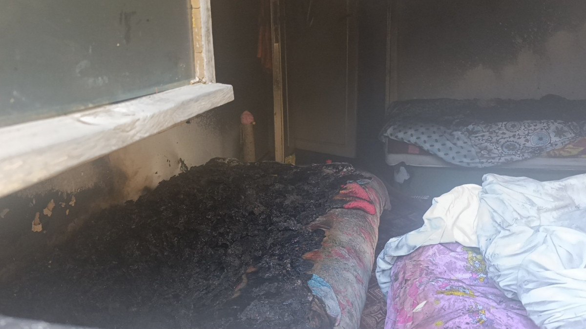Yangında 2 ayrı odadaki yataklar yanarak kullanılamaz hale gelirken, evin diğer odaları da tamamen siyaha büründü.