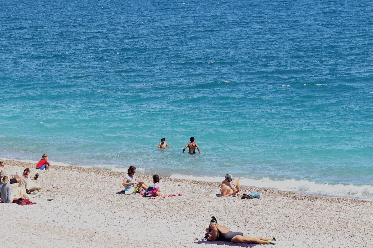 Vatandaşlar ve turistler sıcak havayı Konyaaltı Sahili’nde piknik yapıp güneşlenerek değerlendirdi, bazıları ise denize girdi.