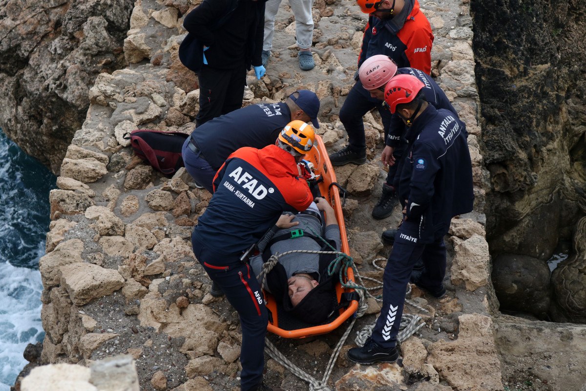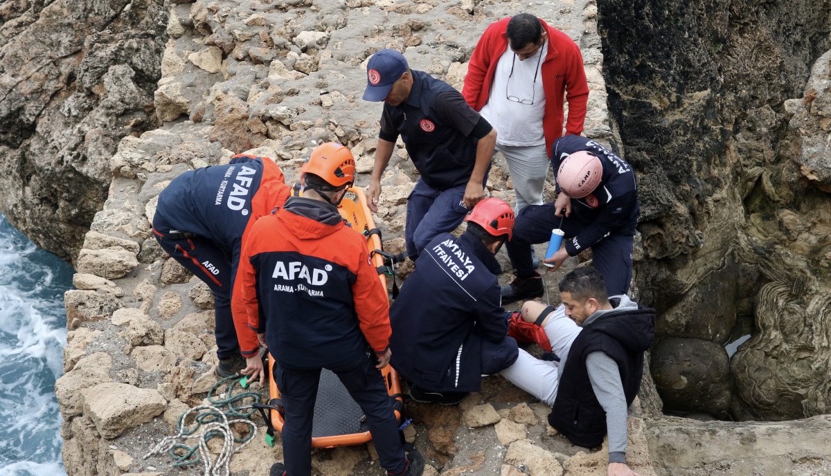 Antalya’nın Muratpaşa ilçesinde Alparslan Barış Arıcan, balık tutmak için falezlerden inmek istediği esnada hayvan pisliğine basınca dengesini yitirip, 5 metreden kayalık alana düştü.