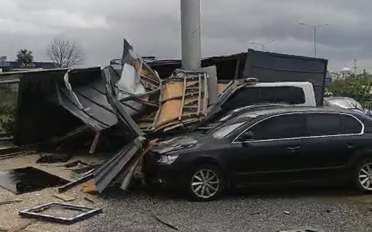 Bugün saat 11.30 sıralarında çıkan hortum, bir mobilya satış mağazası önünde bulunan 2 ton ağırlığındaki üçgen evi otomobillerin üzerinden uçurup, 30 metre ileride ters döndürdü.