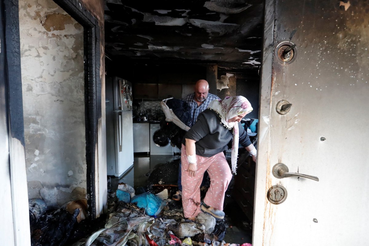 Oğullarının evinin küle döndüğünü gören anne-baba ev içerisinde kurtarılabilecek malzeme olup olmadığını gözyaşları içinde kontrol etti.