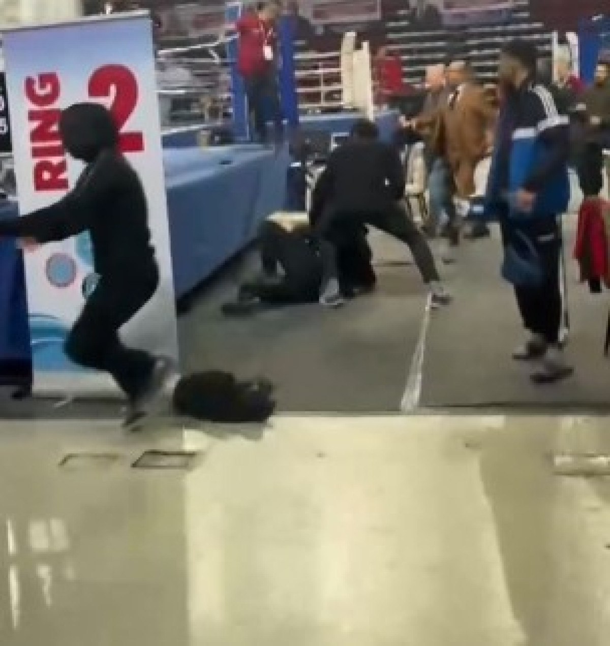 Müsabakayı kaybeden bir antrenör sahaya girip hakemimize yumruk atıyor. Ardından, bu antrenöre bağlı spor kulübünün diğer sporcuları da yan hakemlerimize saldırıyor. Güvenlik güçlerinin hızlı müdahalesiyle olay kontrol altına alındı ve şampiyonamız kaldığı yerden devam ediyor.