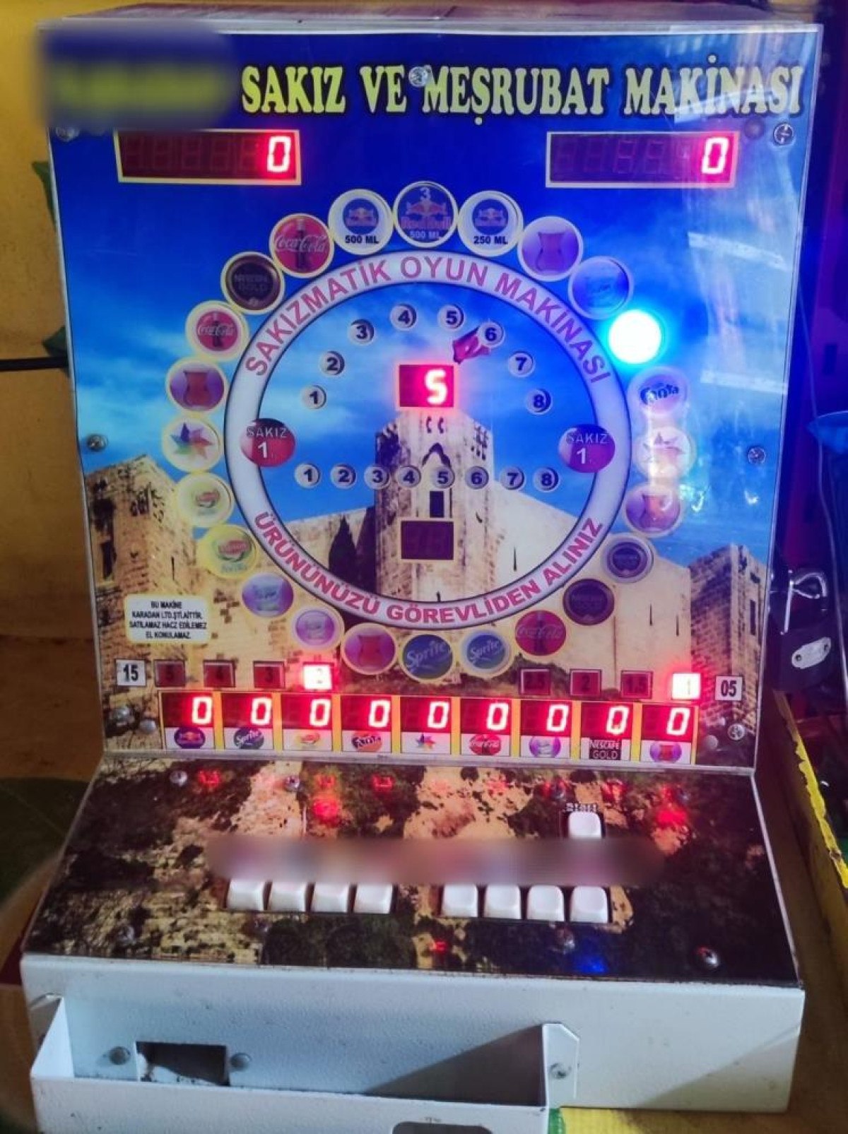 Yapılan çalışmalar neticesinde 1 ruhsatsız tabanca ve bu tabancaya ait fişek, 1 slot makinesi, bin 179 iskambil kağıdı, 180 adet para yerine kullanılan pul, bir miktar Türk lirası, 14 adet çetele, 8 adet isteka, 212 adet okey taşına el konuldu.