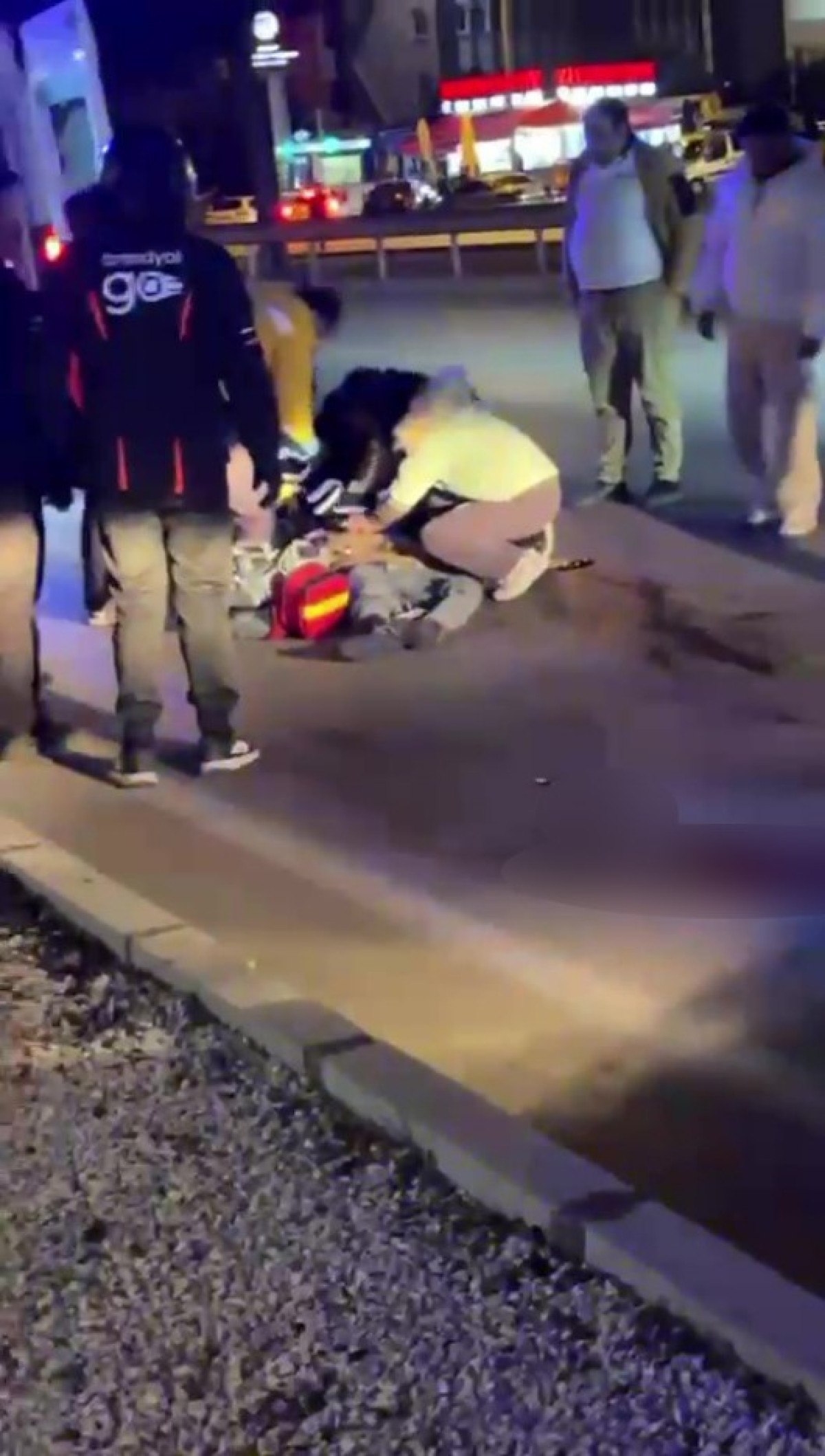 Çarpışmanın etkisiyle hem yaya hem de motosiklet sürücü farklı yönlere savruldu.