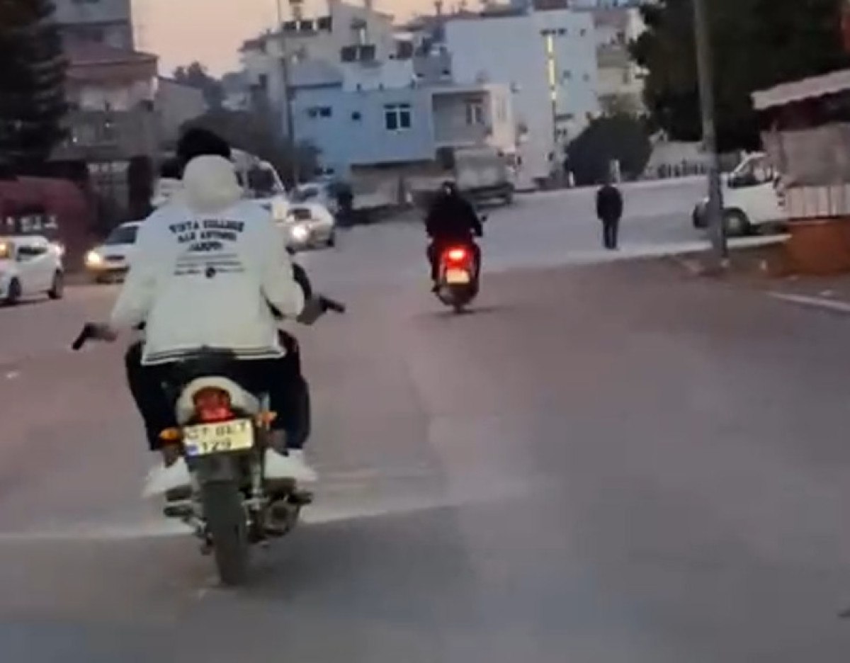 Gençler ellerindeki silahlarla ateş açıp tehlikeli hareketler yaparken bir diğer motosikletli arkadaşları ise o anları kayda aldı.