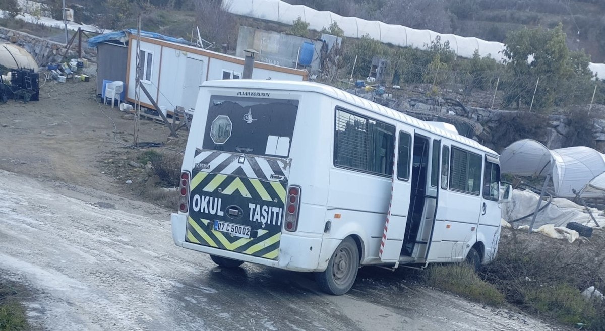 Antalya’nın Gazipaşa ilçesinde Erhan Taşdemir’in kullandığı okul servisi, yolda oluşan buzlanma nedeniyle kontrolden çıkıp, yan şekilde kayarak devrilme tehlikesi atlattı.