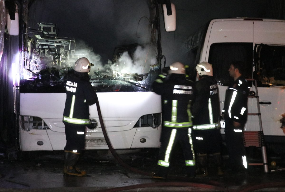 Yangın, iş yerine tamir için bırakılan bir servis aracı, otobüs ve otomobile de sıçradı.
