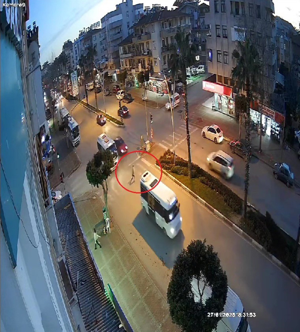 Durakta karşıya geçmek için bekleyen yaya Yunus E.T. de, minibüslerin yanaşmasını fırsat bilerek aniden yola fırladı.