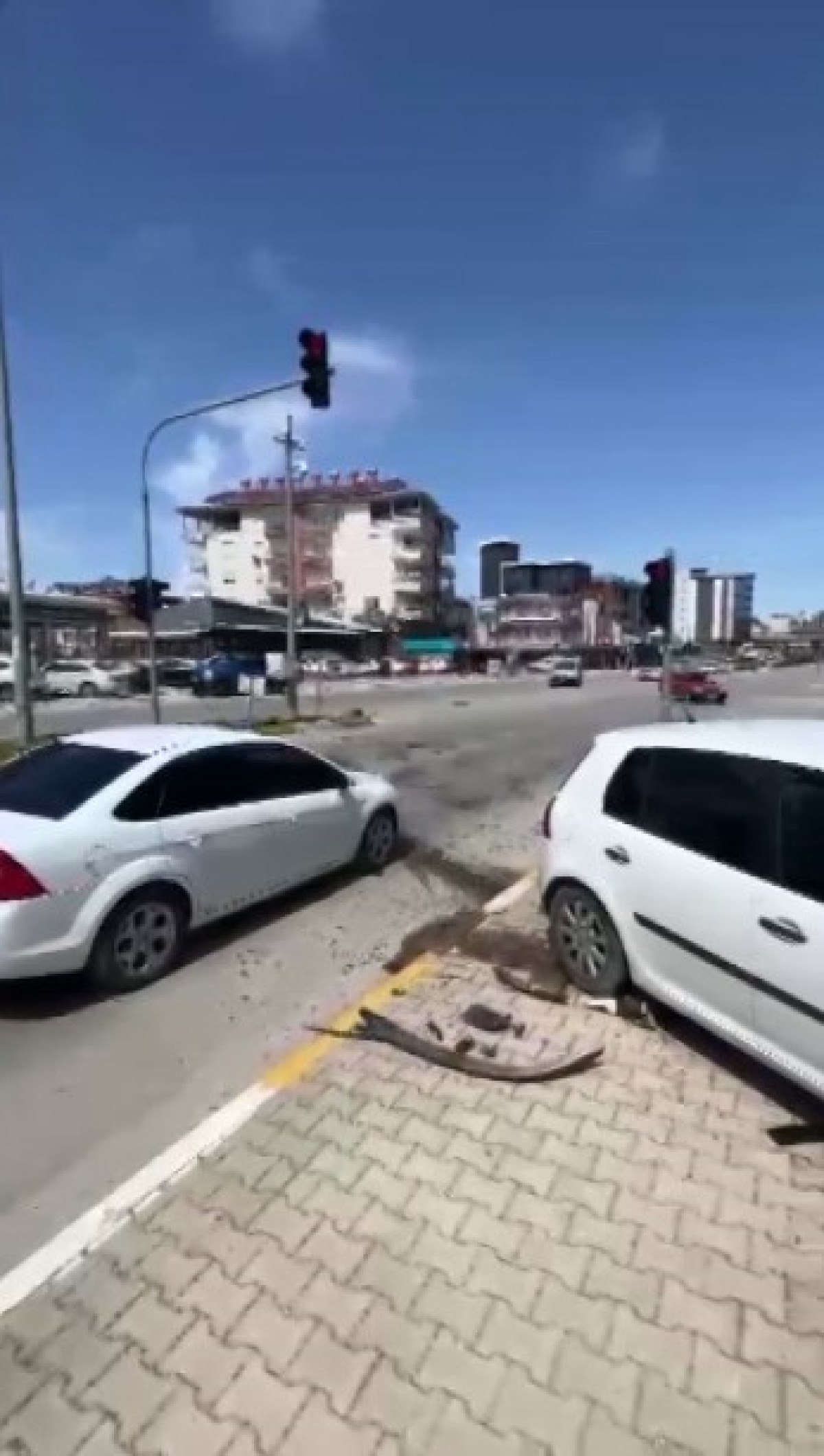 Yine görüntülerde, kaza anında bir köpeğin kaldırıma fırlayarak sese tepki vermesi, sandalyede oturan bir vatandaşın ise olan biteni izlediği görüldü.