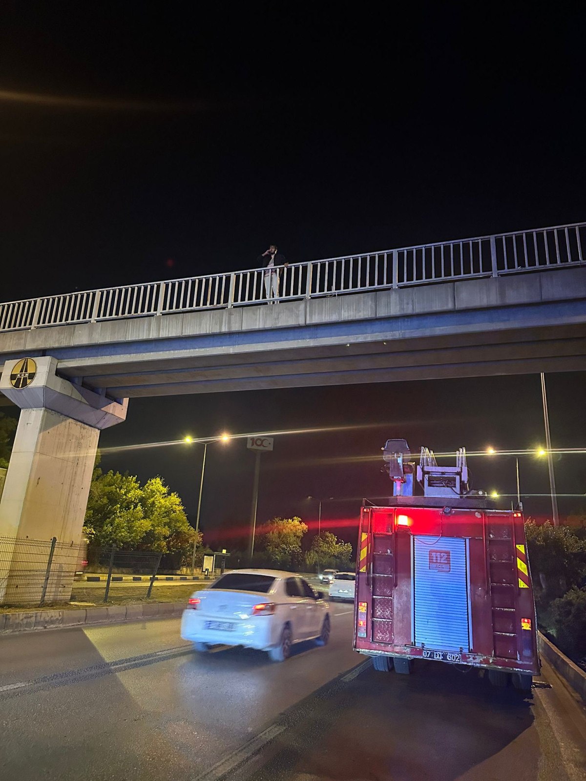 Kız arkadaşı ile yaşadığı sorun nedeniyle üst geçide çıktığı öğrenilen genci polis ekipleri ikna etmek için uzun süre çaba sarf etti.