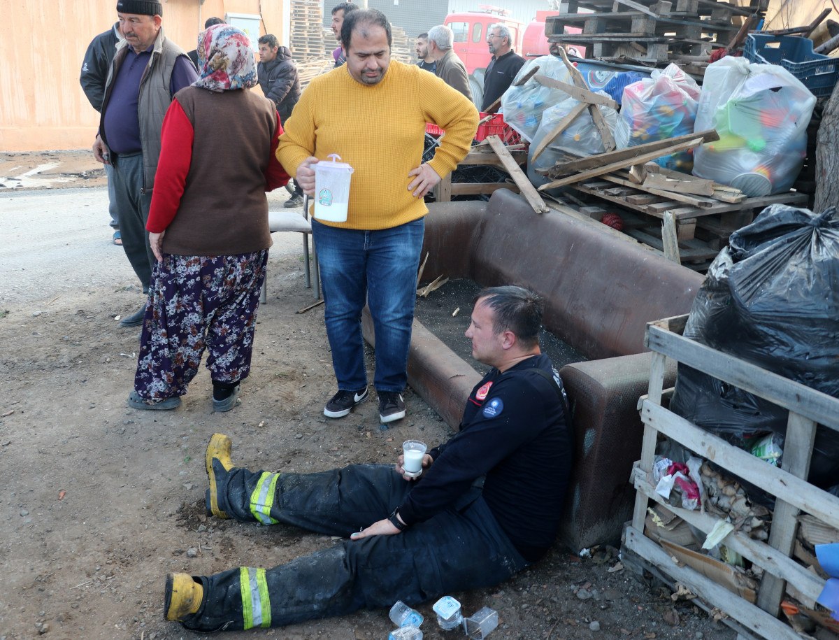 Sol bacağında zedelenme olduğu öğrenilen itfaiye eri, gelen sağlık ekibi tarafından hastaneye kaldırıldı. Mehmet Can, “Koku geliyordu, itfaiyeyi aradık. Yoğun duman vardı. İtfaiye ekiplerimiz geldi. Yangını söndürmeye çalışan bir itfaiyeci de düşerek ayağını incitmiş. Biz de zehirlendiğini düşünüp, hemen ona ayran getirdik. Şu an ambulansla hastaneye gitti” diye konuştu.
