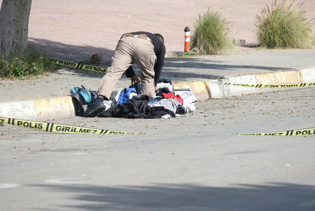 Bomba İmha ve İnceleme Şube Müdürlüğü ekibi olay yerinden ayrıldıktan sonra diğer ekipler kıyafetleri valize koyarak ekip otosuna aldı.