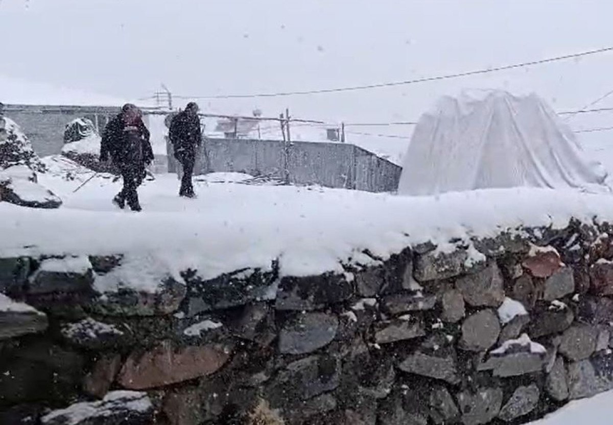 Posof ilçe merkezine 21 kilometre uzaklıktaki Balgöze köyünde vatandaşlar, güne karla uyandı.