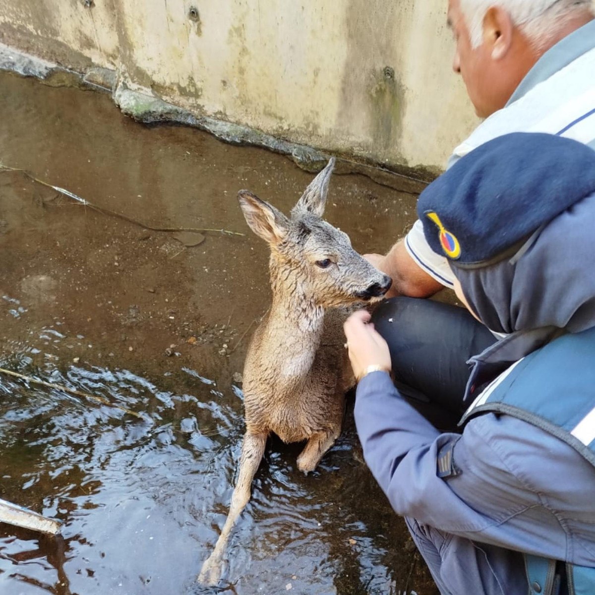 Dere kenarında gezinirken karacayı fark edenler, durumu jandarmaya bildirdi.