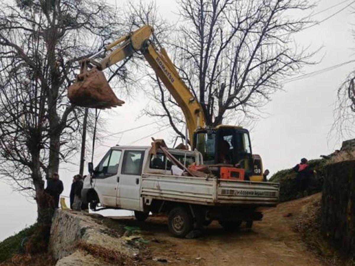 Yağmurla birlikte çamurlaşan yolda mahsur kalan kamyoneti kurtarmak için yine aynı şirkete ait bir ekskavatör bölgeye gönderildi ancak kaygan yol nedeniyle ekskavatör de kontrolünün kaybedilmesi sonucu kamyonete çarptı.