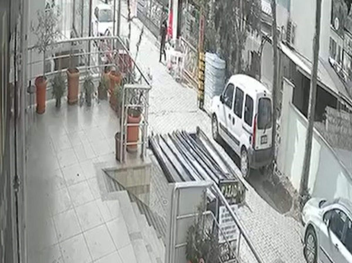 O anlar bir işyerinin güvenlik kameralarınca kaydedildi.
