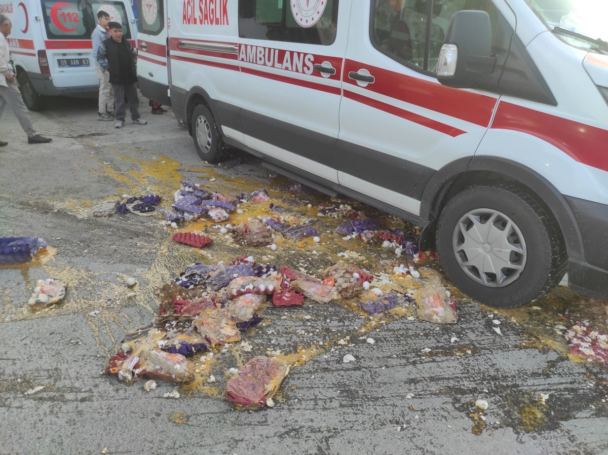 Olayda, bir otomobil ile yumurta taşıyan ticari araç kavşak içerisinde çarpıştı.