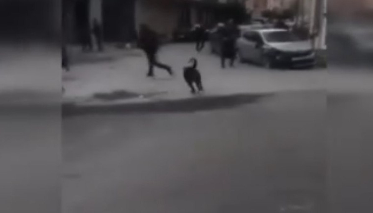 Vatandaşlardan biri, köpeğin kuyruğundan tutarak çekmeye çalışırken, diğeri de bir kürekle köpeği uzaklaştırmaya uğraştı. Yerde yatan yaralı kişiden uzaklaşan köpek, bu kez etraftaki diğer insanlara da saldırmaya devam etti.
