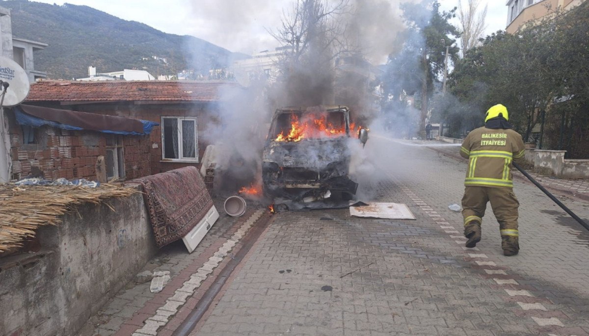 Balıkesir’de Edremit’in Altınoluk Mahallesi Basın Sitesi önünde park halinde olan G.A.’ya ait kamyonetten dumanlar çıkmaya başladı.