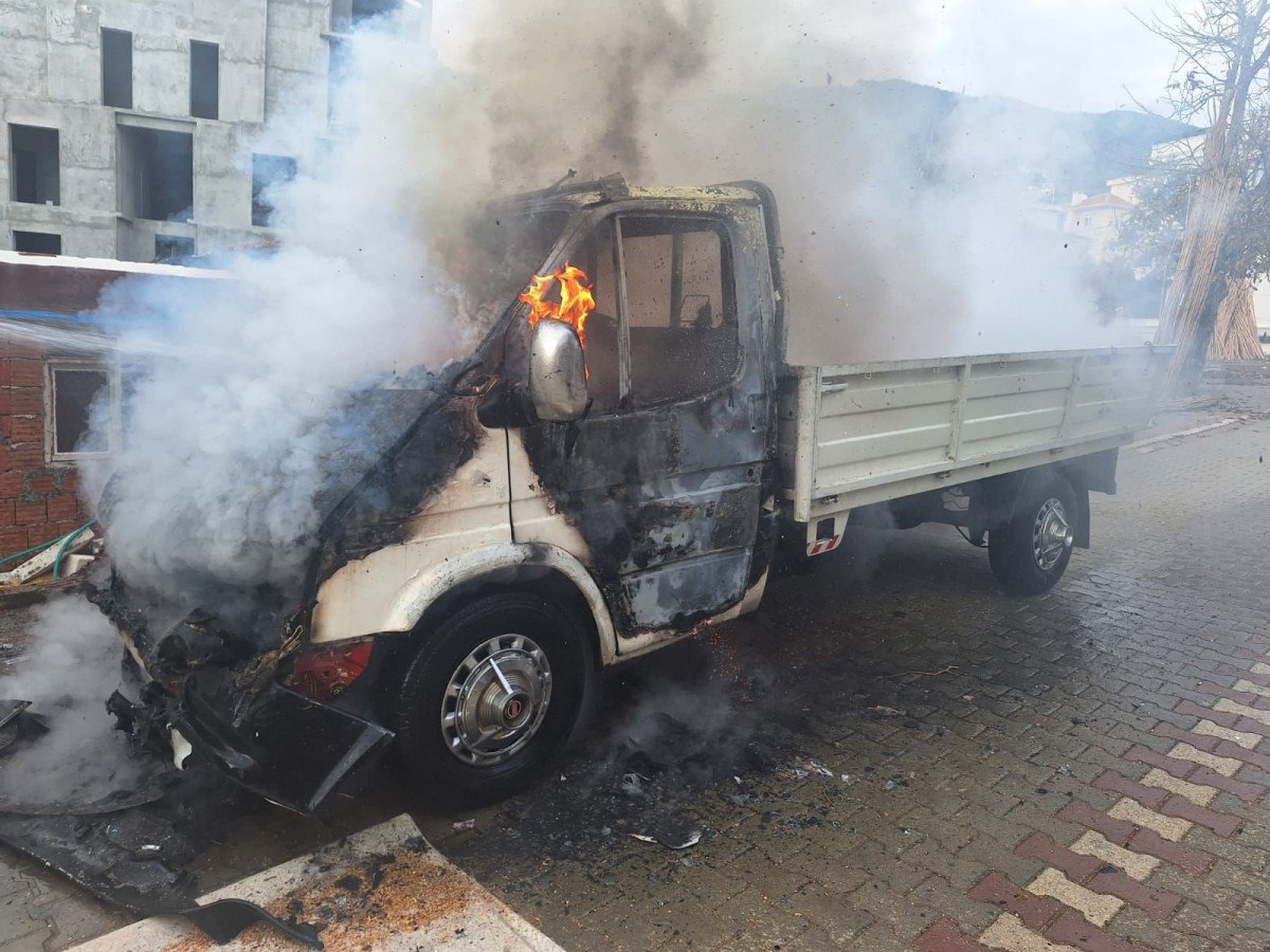 Kısa sürede alev topuna dönen kamyonet ekipleri çalışması ile söndürüldü.