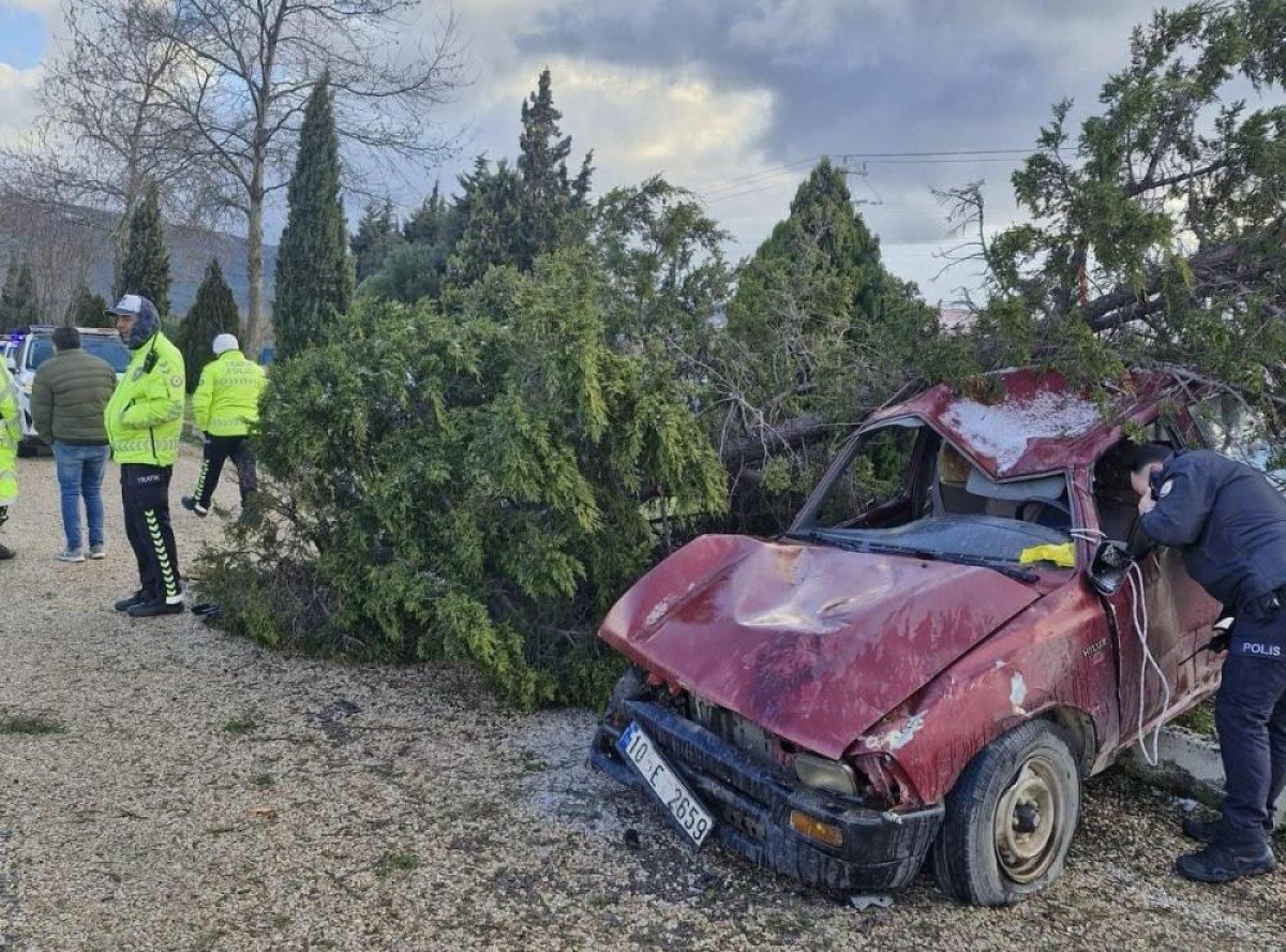 Balıkesir’in Erdek ilçesi Bandırma kara yolu Düzler mevkiinde T.Ç. isimli şüpheli, çaldığı kamyonetin direksiyon hakimiyetini kaybederek refüjdeki ağaçlara çarptı.